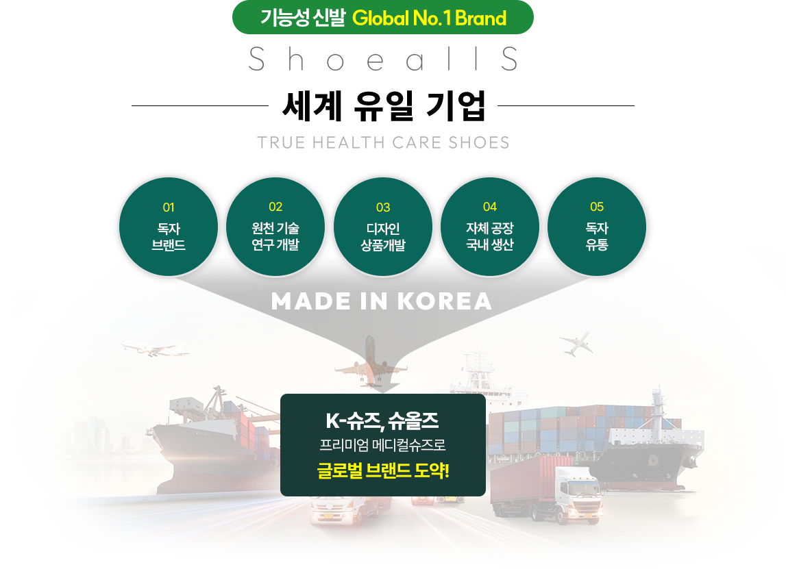 발끝까지 건강을, 땅끝까지 행복을! 건강한 의료용 & 행복한 기능성 신발의 세계화!